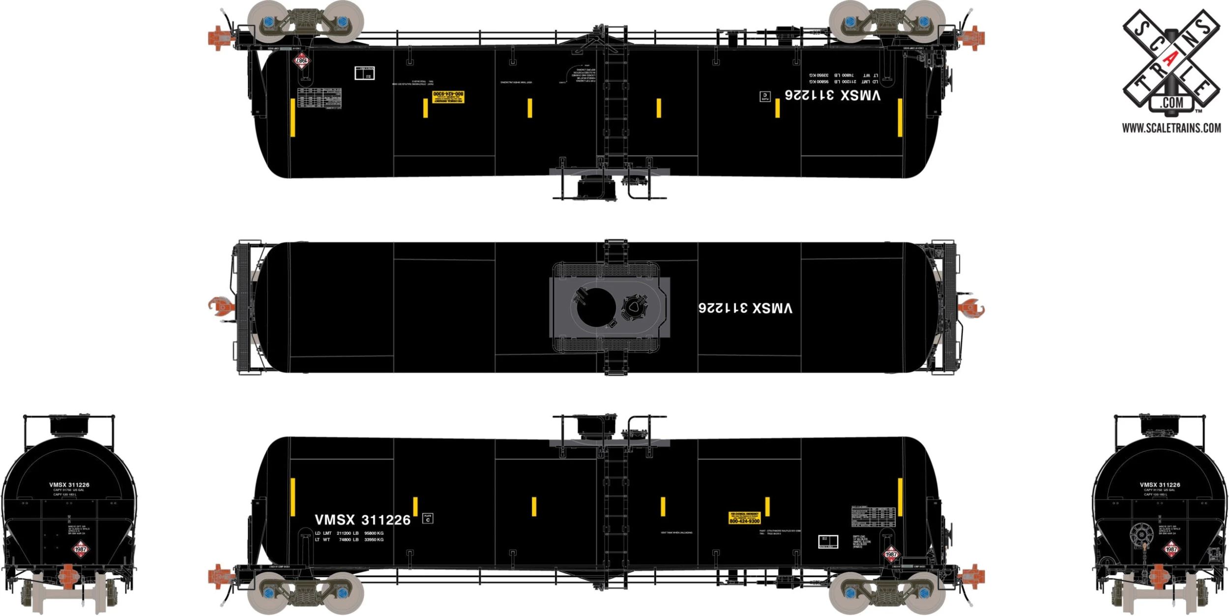 ScaleTrains 31778 Rivet HO Scale Trinity 31K Tank Car w/ Shields Valero Ethanol VMSX 311289