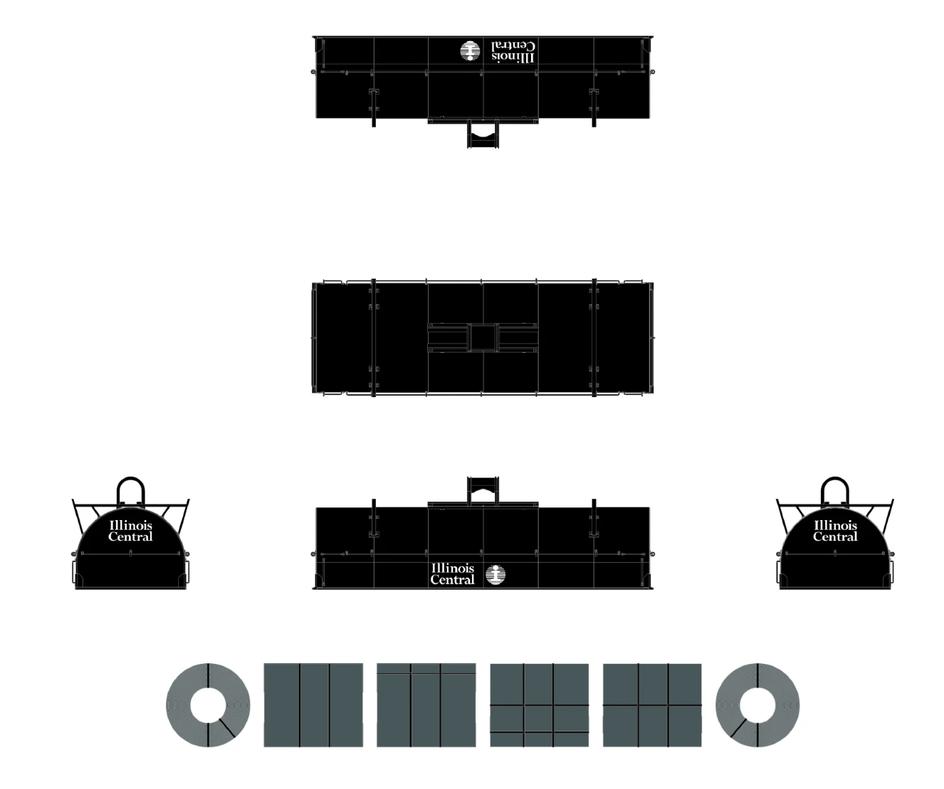- Body has four wireform side grab irons and four wireform end grab irons