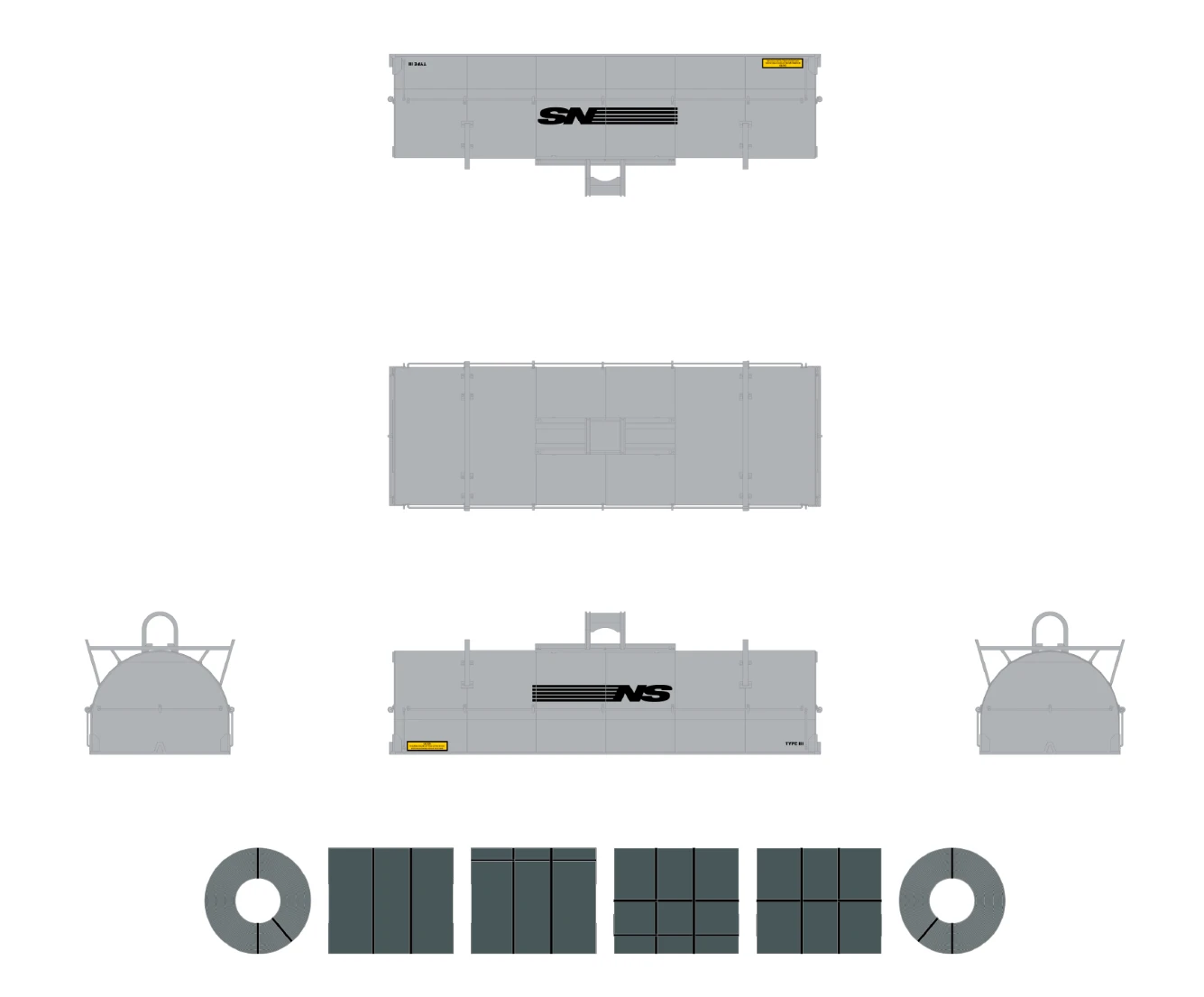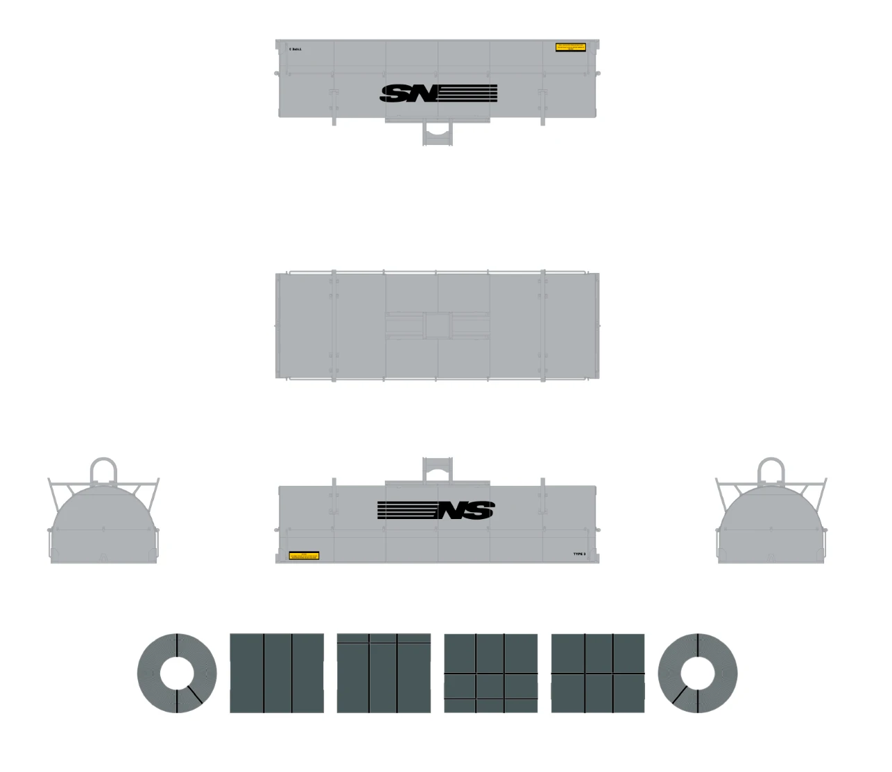 - Body has four wireform side grab irons and four wireform end grab irons