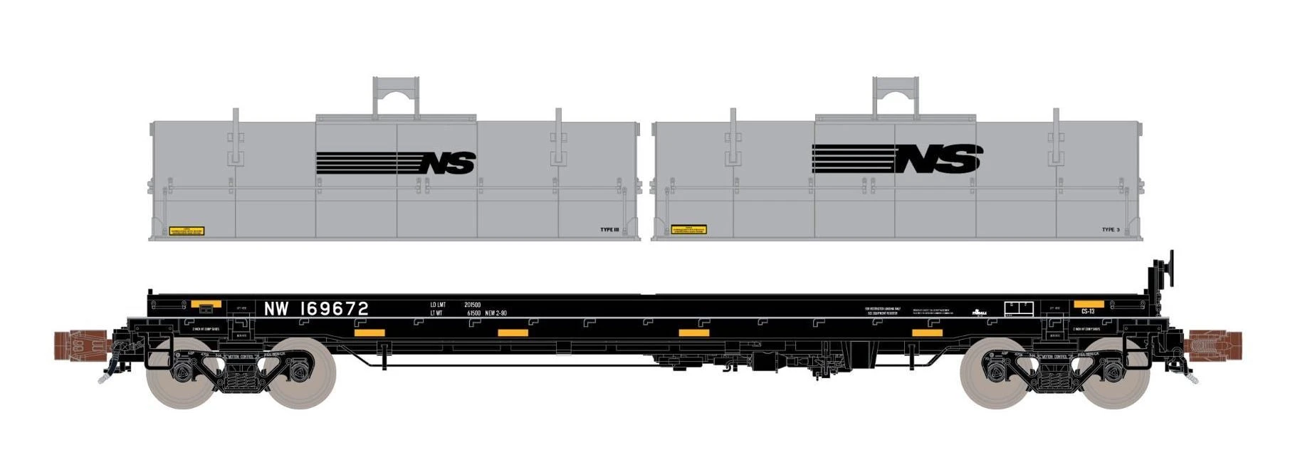 ScaleTrains Rivet 38509 HO Scale Thrall 48′ Coil Steel Car “Mismatched” Norfolk Southern NS 169672