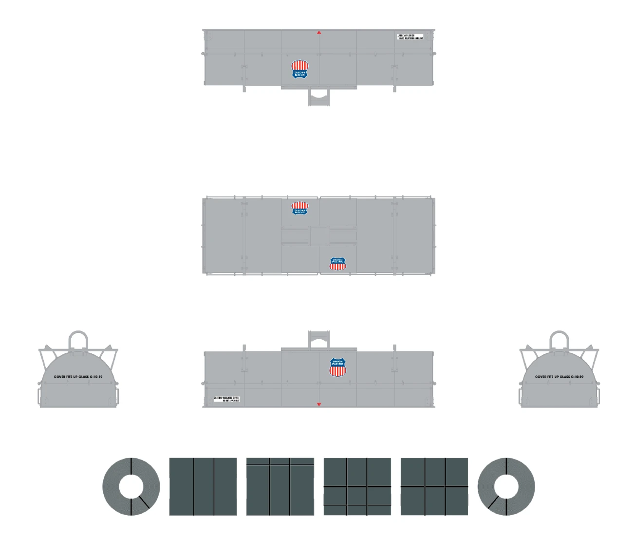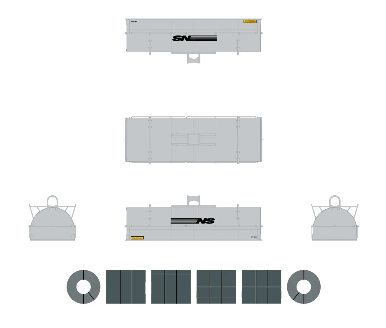 - Body has four wireform side grab irons and four wireform end grab irons