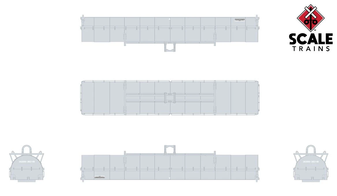 - Late body type, built by Trinity: Trinity builder logos, heavy vertical stiffener on the top of the draft gear, and end handrails attached to the car ends