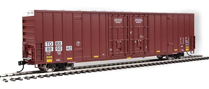 Bring your freight car fleet up to date in minutes with the WalthersMainline(R) 60′ High-Cube Plate F Boxcar in HO Scale. Currently in service for a variety of railroads and TTX, these taller and longer cars offer shippers increased capacity making them a favorite for lumber, canned goods, beer, wine, steel, appliances and other manufactured goods that require protection in transit.